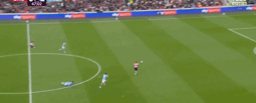 第89分钟,多纳鲁马后场玩火,大脚解围击中沙德的身体,差点反弹进自家球门,曼城逃过一劫。